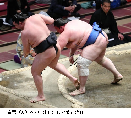 ▽竜電に碧山は碧山が押し出し。