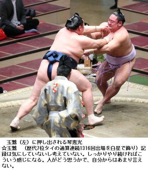 ▽琴恵光に玉鷲は玉鷲が押し出し。