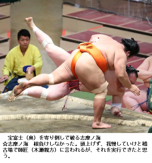 ▽宝富士に志摩ノ海は志摩ノ海が寄り倒しで勝ちました。