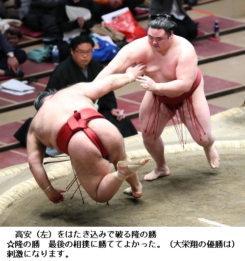 ▽小結 高安に関脇 隆の勝は隆の勝がはたき込みで勝ちました。