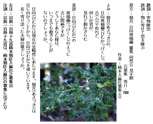 巻11-2500: 朝月の日向黄楊櫛古りぬれど何しか君が見れど飽かざらむ