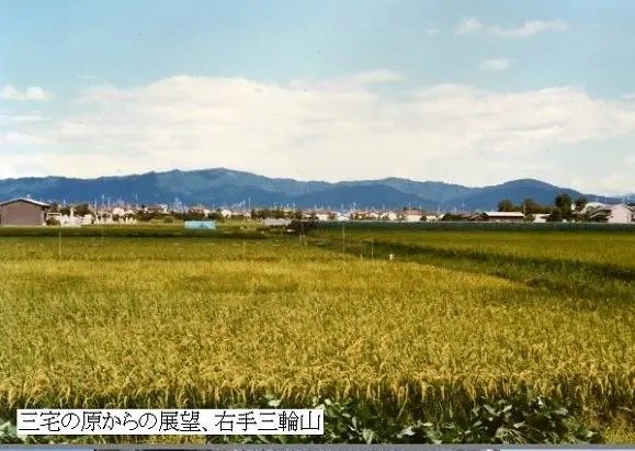 意訳:日が射しこめる三宅の原(奈良県磯城郡三宅町)で、いつも土まで足で踏み分けて夏草に腰まで没している。どのような立派な人の子のためでしょう。私を通わせるのは愛しいあの人。そうですそうです、それを母は知らない。そうですそうです、それを父は知らない。蜷貝の中身のようにつややかにまっ黒な髪に神聖な神を祈る木綿を付け、アサザの花を髪に結んで頭から垂らし、大和の流行りの黄楊の小櫛を髪に押え挿し、肌のスベスベな人。そんな私の愛しい恋人です。