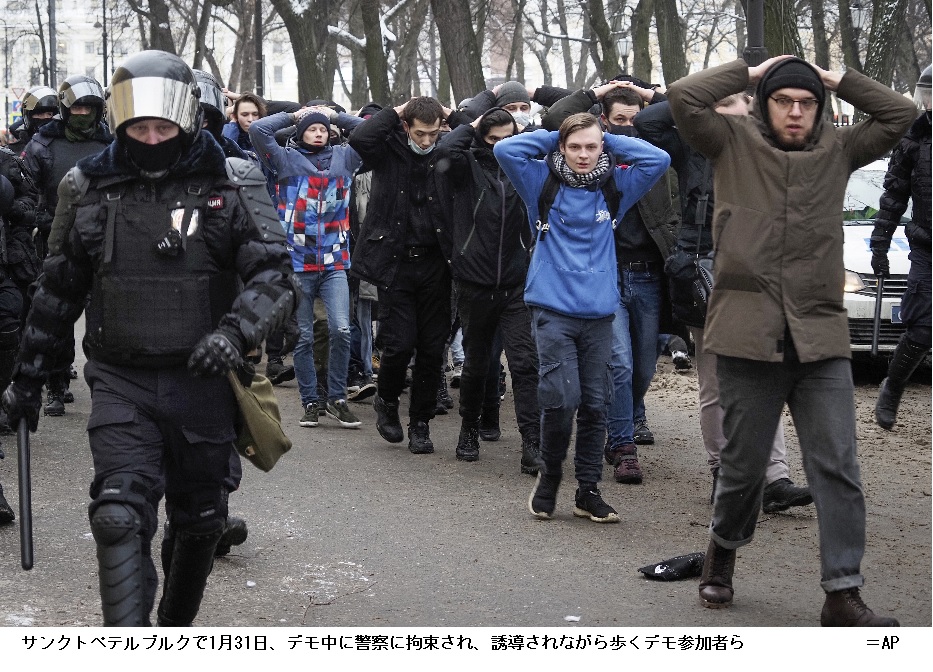反政権活動家アレクセイ・ナバリヌイ氏の解放を求める全国規模の反政権デモは、同月23日に続き2回目。政権は、デモは違法だとして治安部隊を動員し、各地で参加者を拘束し強制排除した。一方、デモを呼びかけたナバリヌイ陣営は、「我々の力と勇気が、自ら思っているよりはるかに強いと証明した」とし、デモの継続を宣言した。