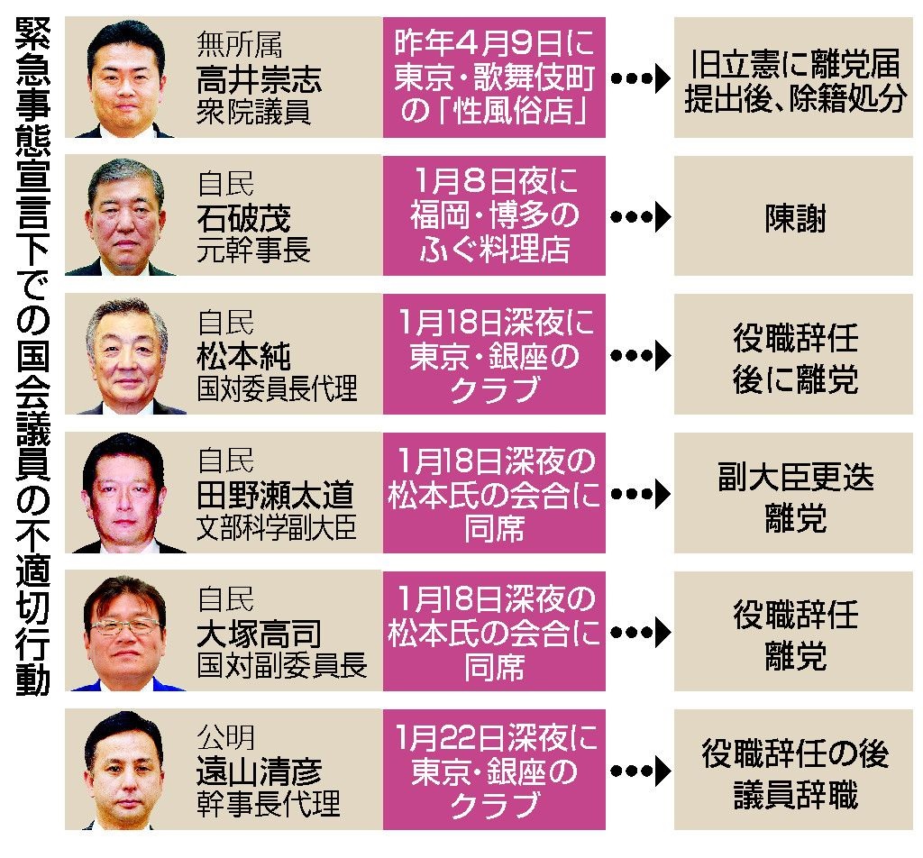 公明・遠山氏が議員辞職 自民・松本氏ら3氏離党―緊急事態下クラブ訪問で引責