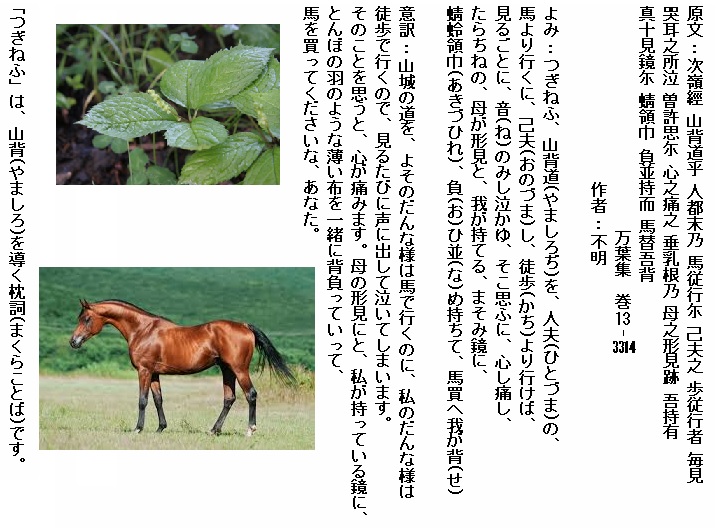 巻13-3314:つぎねふ山背道を人夫の馬より行くに己夫し.......(長歌)