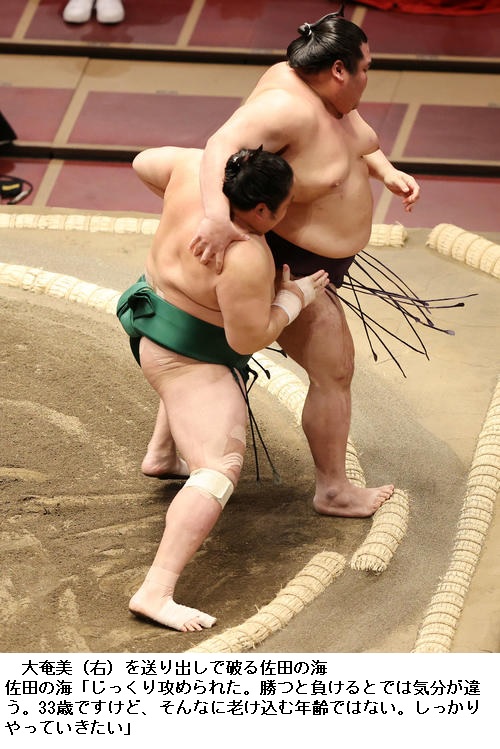 ▽佐田の海に十両の大奄美は、佐田の海が送り出し。