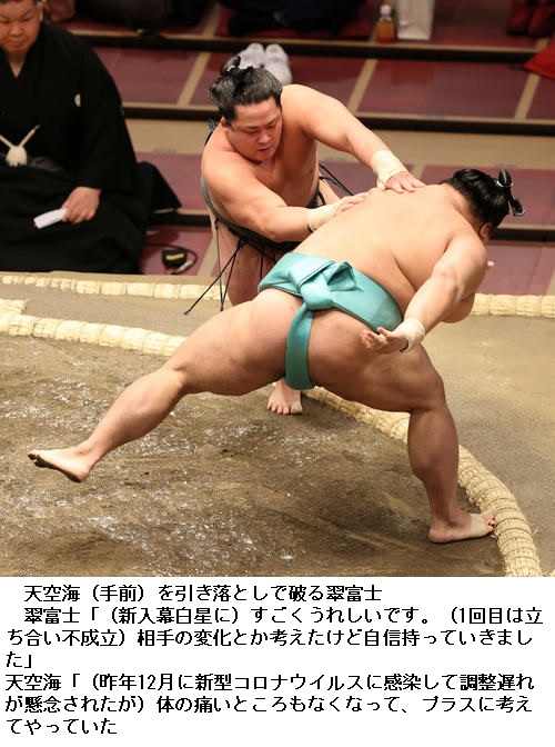 ▽天空海に新入幕の翠富士は、翠富士が引き落とし。