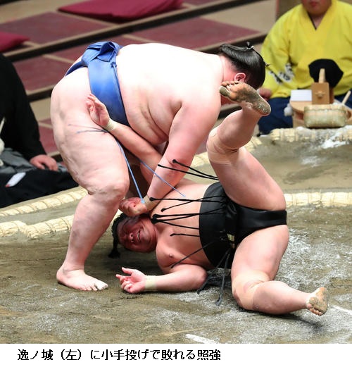 ▽逸ノ城に照強は、逸ノ城が小手投げ。