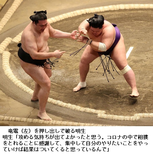 ▽竜電に明生は、明生が押し出しで勝ちました。