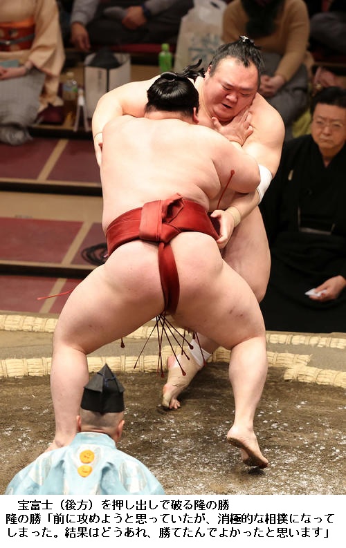 ▽宝富士に隆の勝は、隆の勝が押し出しで勝ちました。