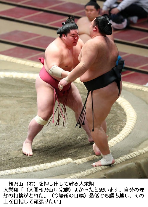 ▽角番の大関 朝乃山に大栄翔は、大栄翔が押し出し。