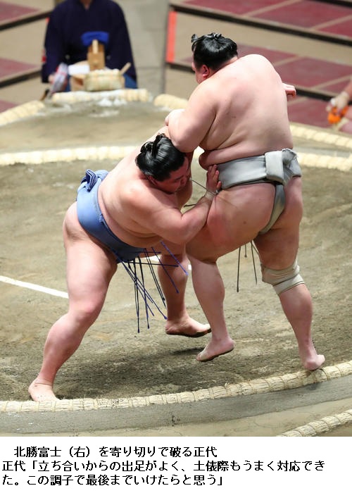▽北勝富士に角番の大関 正代は、正代が寄り切り。