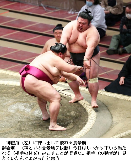 「優勝するためには集中し切って自分の相撲を取るしかない」。欲を出さず、培ってきた押し相撲に徹するのみ。24歳の若武者はやるべきことをわきまえている。 (日本經濟新聞 2021年1月6日 11:00)