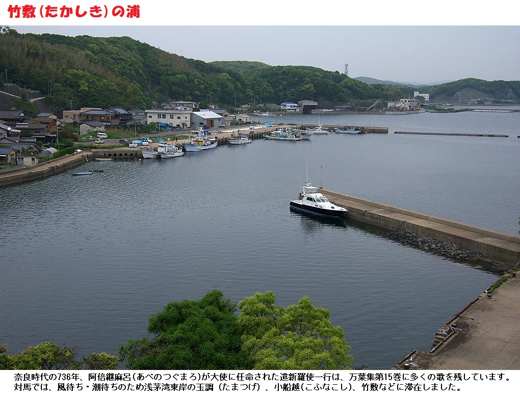 ◎「宇敝可多山」について、「竹敷にある宇敝可多山」とする固有名詞説と、「竹敷の上の方にある山」とする普通名詞説とがあり、従来説が定まっていません。どちらの説にもそれぞれ従いがたい点があることを指摘されます。現地を実際に見て、「宇敝可多山」は実質的には城嶽のことであるが、ここでは普通名詞ととるべきであると説きます。この歌は竹敷の海上から竹敷の方を見て詠んだ歌で、「宇敝可多山」は「竹敷の裏の裏山の上に見える山」と解すべきだと考えたのです。