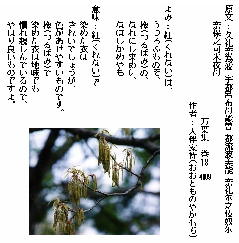 紅(くれない)は うつろふものぞ 橡(つるはみ)の なれにし衣(きぬ)に なほ及(し)かめやも (巻18-4109)