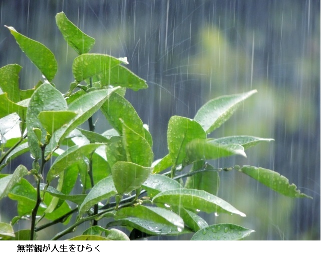 意訳:天地創造の遠い昔の初めから、世の中は定まるものがないものだと、語り継がれて、時を流れて来ました。天の原を振り仰いで眺めると、照る月も満ち昇ってきます。葦や檜の生える山の梢も、春になって来ると花が咲きほこり、秋になると、霜露を負って吹く風に交じって黄葉が散ります。この世も、このような姿です。紅の顔色もやがて移ろい衰え、漆黒の黒髪も変わり、朝に幸福の頬笑みも、夕べには変わってしまい、吹く風の姿が見えないように、流れ逝く水が留まらないように、定まることなく、流れ逝くと、庭に溢れるように、流れる涙は、留めることができません。