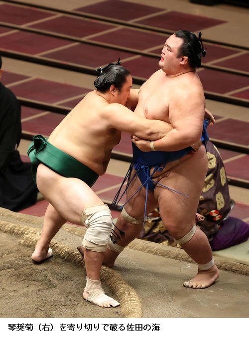 ▽琴奨菊に佐田の海は佐田の海が寄り切り。