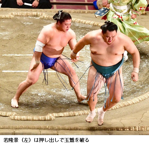 ▽若隆景に玉鷲は若隆景が押し出し。