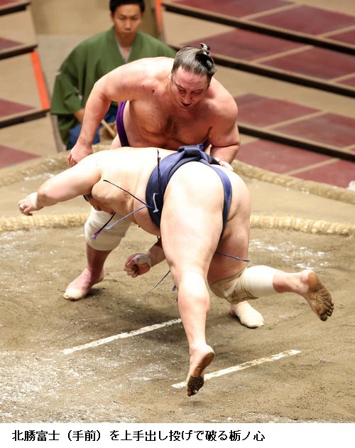 ▽北勝富士に栃ノ心は、栃ノ心が上手出し投げ。