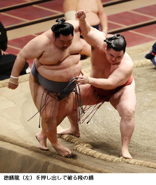 ▽徳勝龍に隆の勝は、隆の勝が押し出しで勝ち越し。