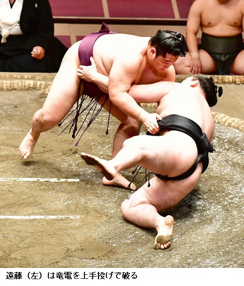 ▽竜電に遠藤は、遠藤が上手投げ。竜電は負け越しました。