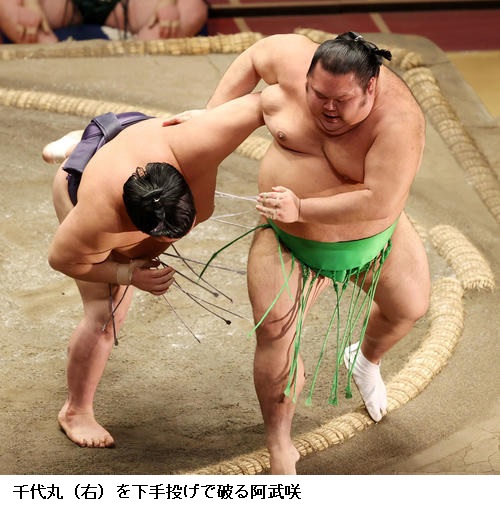 ▽千代丸に阿武咲は、阿武咲が下手投げ。