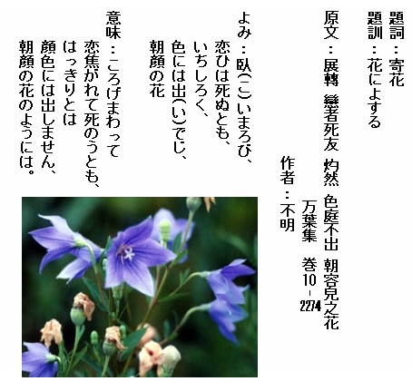 巻10-2274: 臥いまろび恋ひは死ぬともいちしろく色には出でじ朝顔の花