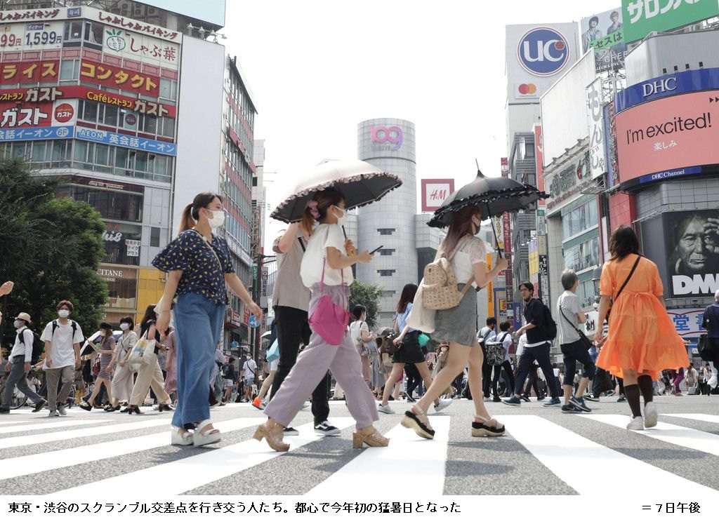 東京都心、今年初の猛暑日 東日本は14日まで高温―気象庁 ―― 日本列島は7日、東北地方南部から九州にかけて太平洋側を中心に晴れ、気温が大幅に上昇した。気象庁によると、静岡市で37.1度、さいたま市で36.4度、群馬県伊勢崎市と宮崎市で36.2度を観測。東京都心(千代田区)では35.4度となり、今年初めて35度以上の猛暑日となった。