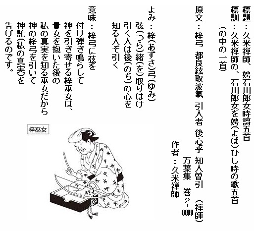 巻2-0099: 梓弓弦緒取りはけ引く人は後の心を知る人ぞ引く
