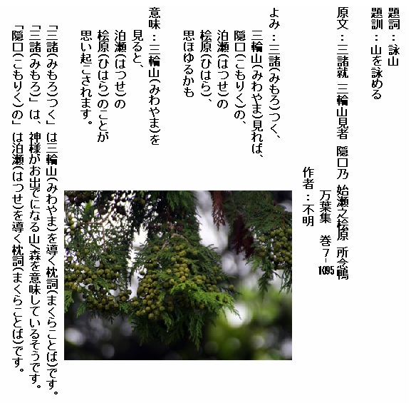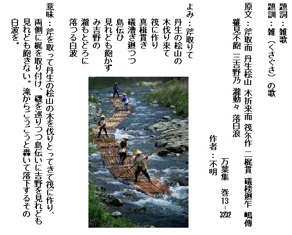 巻13-3232: 斧取りて丹生の桧山の木伐り来て.......(長歌)