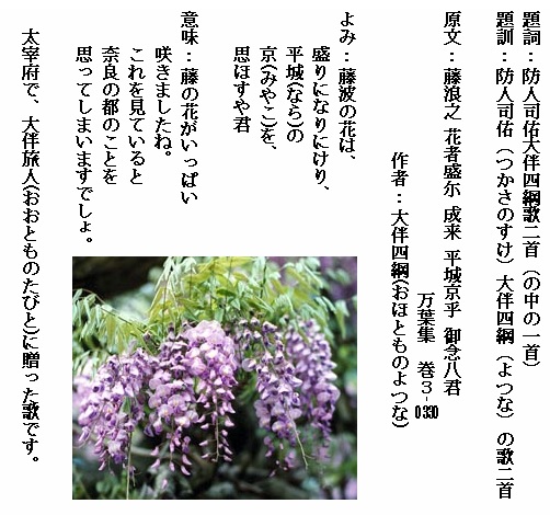 巻3-0330: 藤波の花は盛りになりにけり奈良の都を思ほすや君
