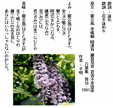 標訓:霍公鳥に藤の花の并せて詠める一首并せて短謌