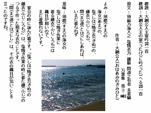 巻3-0413: 須磨の海女の塩焼き衣の藤衣間遠にしあればいまだ着なれず