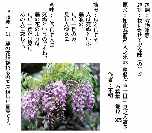 巻12-3075: かくしてぞ人は死ぬといふ藤波のただ一目のみ見し人ゆゑに