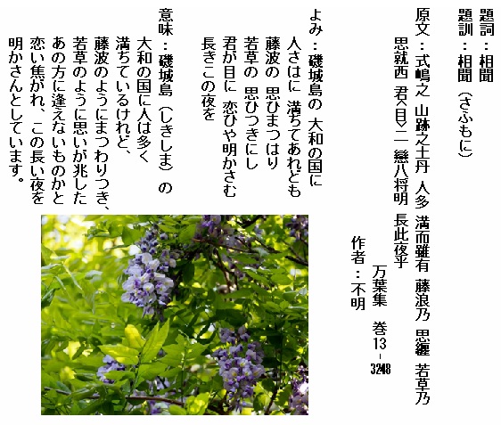 巻13-3248: 敷島の大和の国に人さはに満ちてあれども.......(長歌)