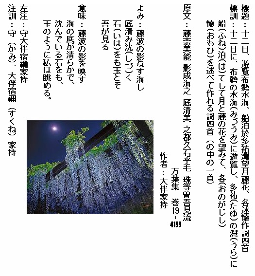 巻19-4199: 藤波の影なす海の底清み沈く石をも玉とぞ我が見る