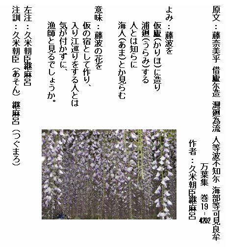 巻19-4202: 藤波を仮廬に作り浦廻する人とは知らに海人とか見らむ