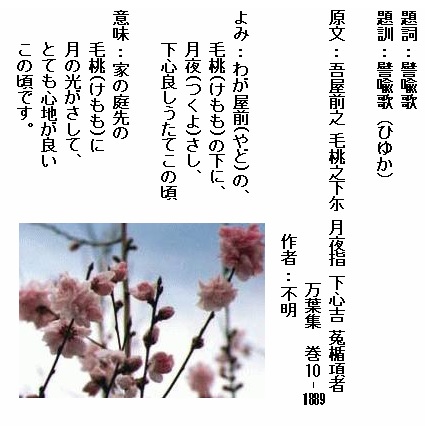 巻10-1889: 我が宿の毛桃の下に月夜さし下心よしうたてこのころ