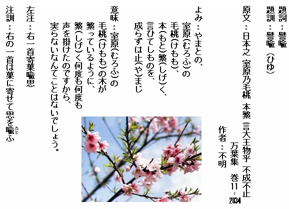 巻11-2834: 大和の室生の毛桃本繁く言ひてしものをならずはやまじ
