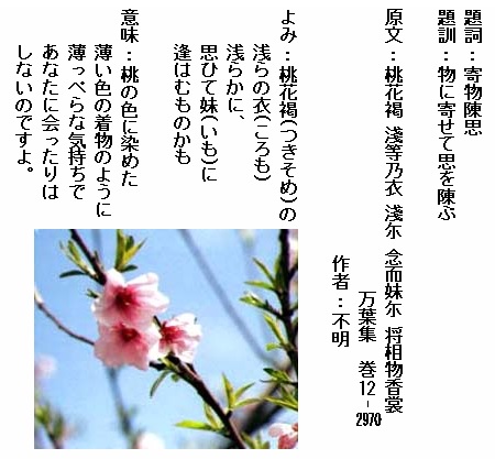 巻19-4192: 桃の花紅色ににほひたる面輪のうちに.......(長歌)