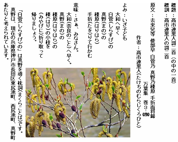 巻3-0280: いざ子ども大和へ早く白菅の真野の榛原手折りて行かむ