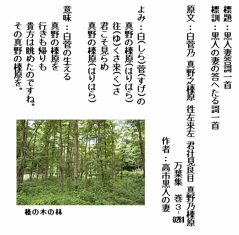 巻3-0281: 白菅の真野の榛原行くさ来さ君こそ見らめ真野の榛原