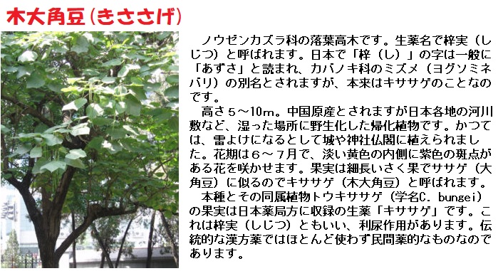 なお、ノウゼンカズラ科キササゲ属の木大角豆(きささげ)だという説もあります。