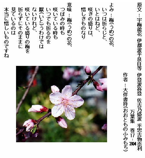 巻17-3904: 梅の花いつは折らじといとはねど咲きの盛りは惜しきものなり