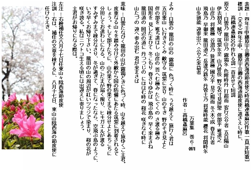 [題詞]追和大宰之時梅花新歌六首(巻17-3901~3906)