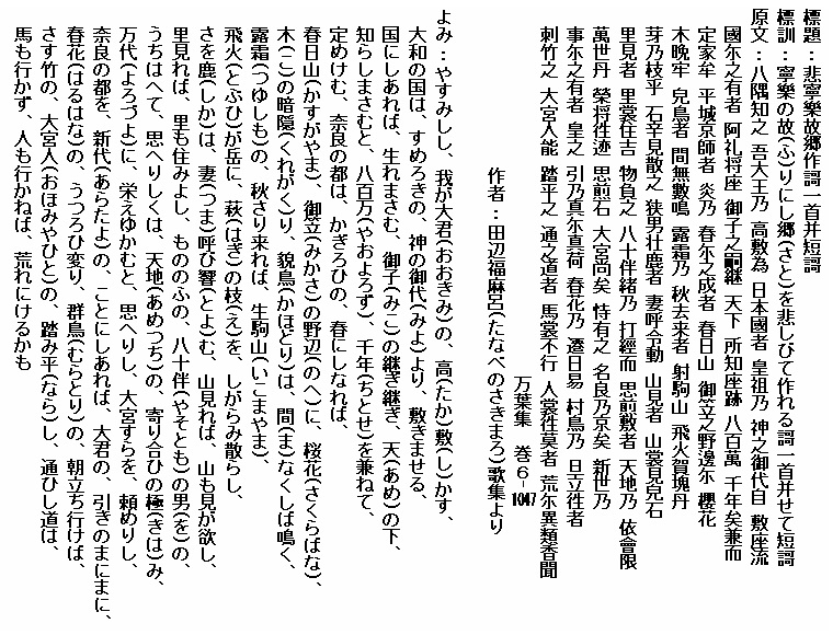 巻6-1047: やすみしし我が大君の高敷かす大和の国は.......(長歌)