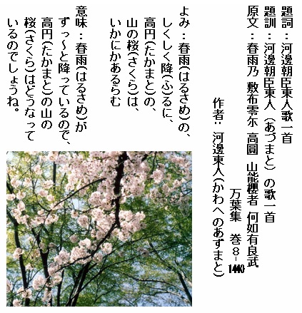 巻8-1440: 春雨のしくしく降るに高円の山の桜はいかにかあるらむ