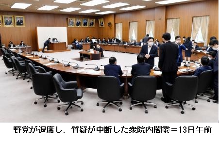 衆院内閣委は12日の理事懇談会で、13日は同法改正案の質疑を行い、採決については協議を続けることで折り合った。与党は14日に同委で、15日に衆院本会議で採決、参院に送付する日程を描く。週内の衆院通過を明言している自民党の森山裕国対委員長は記者団に「スケジュール感に変わりはない」と強調した。