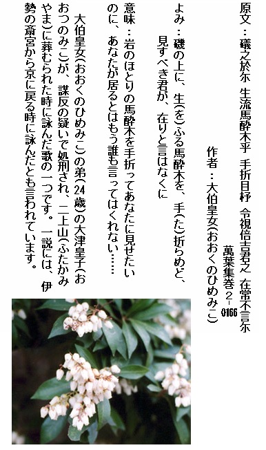 巻2-0166: 磯の上に 生ふる馬酔木を 手折らめど