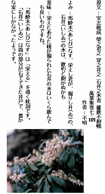巻7-1128: 馬酔木なす 栄えし君が 掘りし井の